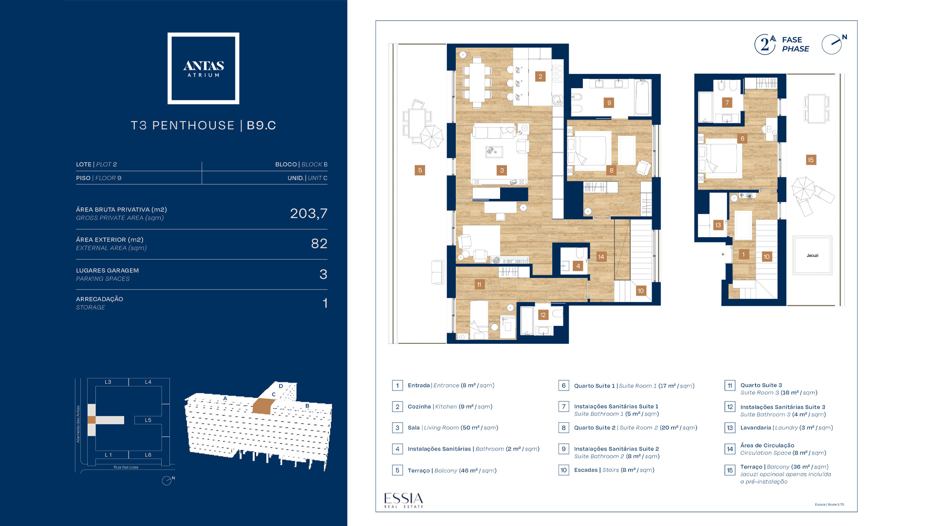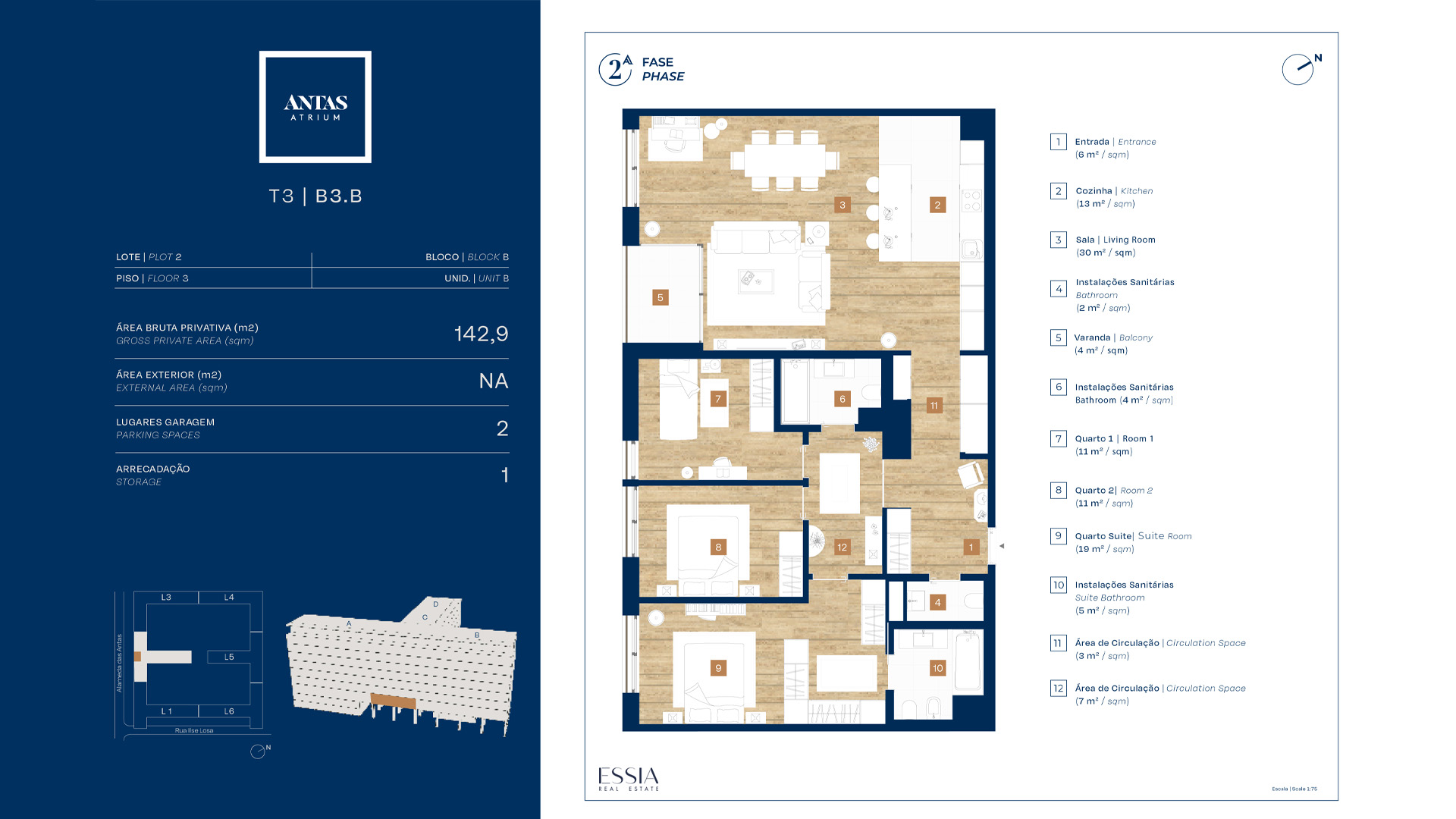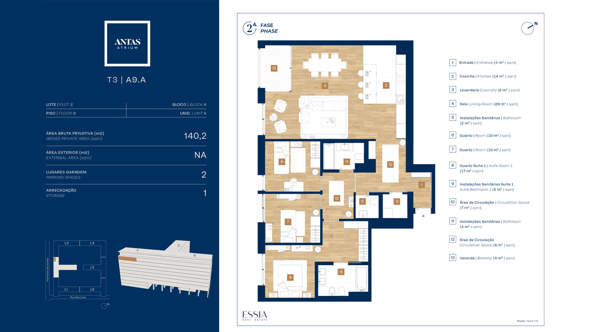 Antas Atrium se développe en six phases, totalisant plus d’un millier de logements, des studios aux T4 duplex. Les appartements ont été conçus pour maximiser confort, fonctionnalité et luminosité, avec de larges balcons et terrasses prolongeant l’espace intérieur vers l’extérieur. À l’intérieur, des aménagements polyvalents et des espaces bien distribués répondent aux modes de vie contemporains.