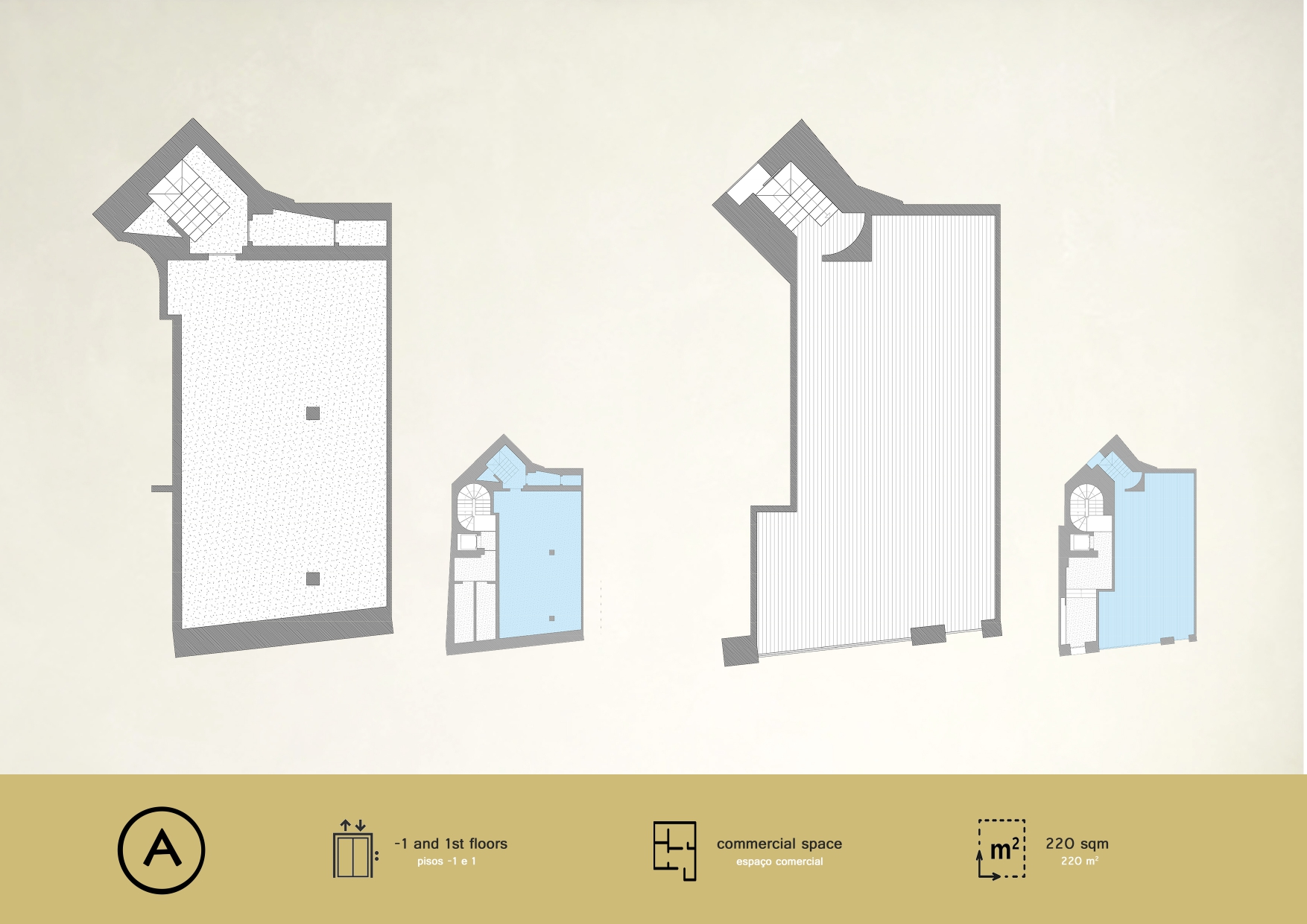 L´ensemble se compose de 9 unités seulement, dont un magasin au rez-de-chaussée et huit appartements résidentiels de type T0, T2 et T3.