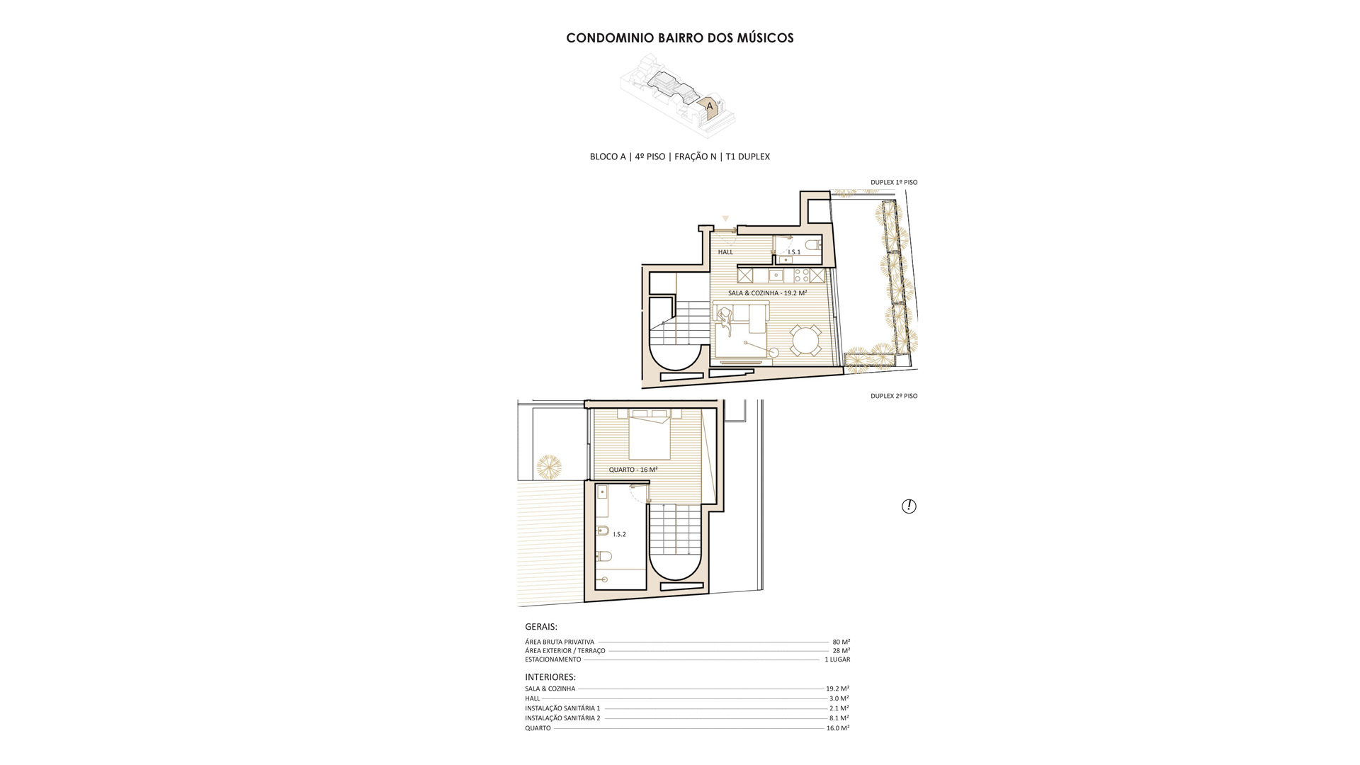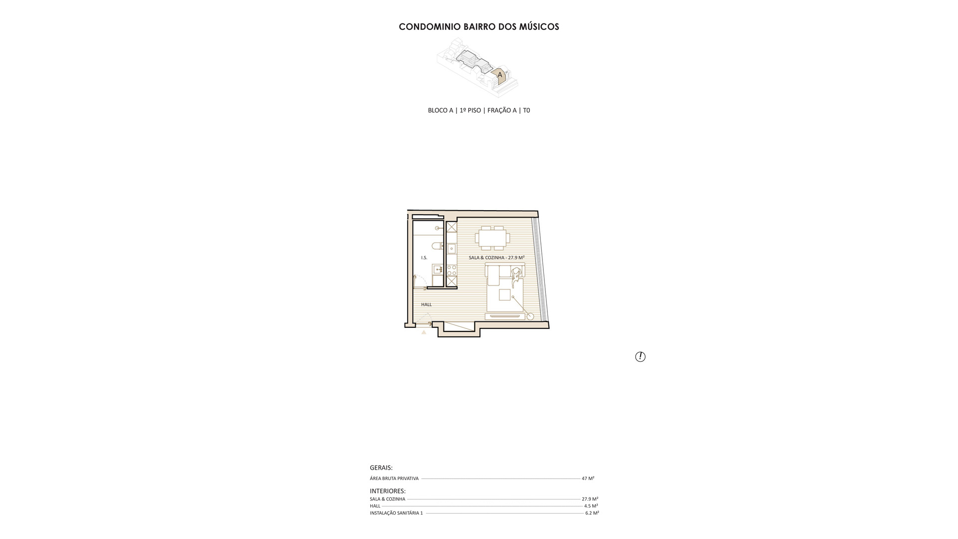 O Edifício A, com frente urbana para a Rua Ciríaco Cardoso, integra 14 apartamentos de tipologias T0, T0+1, T1, T1 Duplex e T2, com áreas privativas aproximadas entre 47 m² e 95 m². As áreas sociais apresentam soluções funcionais em open space, com salas e cozinhas bem dimensionadas, pensadas para o dia a dia urbano. Algumas frações dispõem de varandas ou terraços, bem como lugares de estacionamento privativos, acrescentando conforto e praticidade.